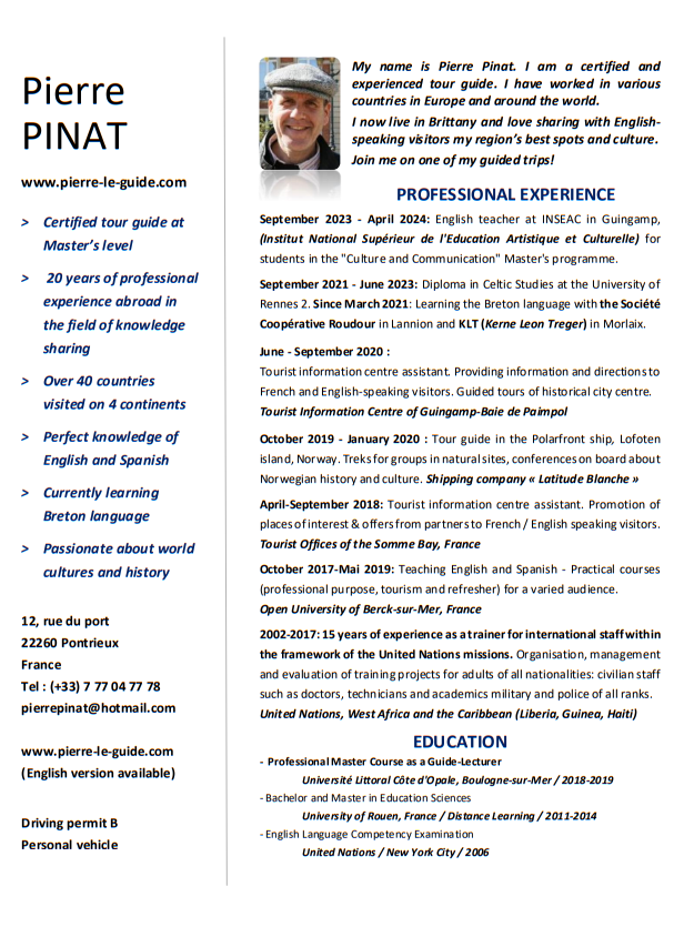 My name is Pierre, I am a certified French tour guide speaking fluent English. Let me guide you around Brittany for a special journey you shall remember !